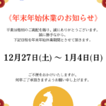 - 年末年始休業のお知らせ年末年始休業のお知らせでございます。